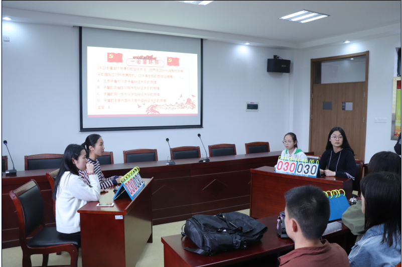 知识竞赛分初赛和决赛两个环节进行,考察内容涵盖习近平新时代中国特色社会主义思想、党章党规、党史国情、形势与政策等方面的内容。初赛吸引了近120名同学参与,12名选手以优秀的笔试成绩脱颖而出,获得决赛资格。4月28日下午,在天游ty8线路1线路2检测中心入口党员之家,12名选手先后以团队和个人形式进行现场角逐,必答环节他们沉着应战、抢答环节你追我赶,现场气氛紧张激烈。最终,来自17财管的金海兵以其扎实的理论功底、优秀的现场表现斩获桂冠,来自旅游管理、国际贸易等专业的其他选手分别获得二、三等奖。