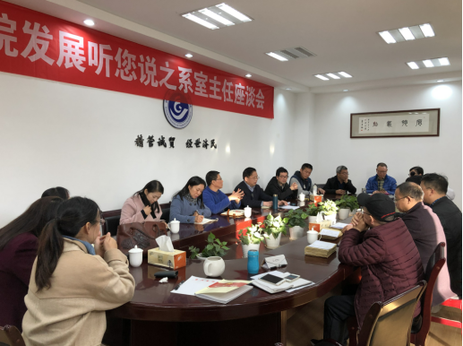 12月12日下午,天游ty8线路1线路2检测中心入口在201召开学院发展听您说之系室主任座谈会,专题讨论如何进一步推进“课程思政”,探索“课程思政”新路径。学院党政领导、系室主任参会。