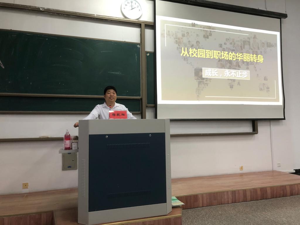 6月4日下午,为了进一步做好就业指导和服务工作,天游ty8线路1线路2检测中心入口优秀校友杨杭阳在2403教室为天游ty8线路1线路2检测中心入口大三学子作就业指导讲座。
