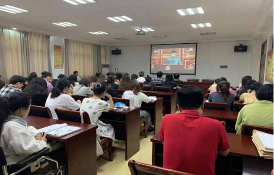 2021年7月1日,天游ty8线路1线路2检测中心入口党委组织党员师生在党员之家集中观看庆祝中国共产党成立100周年大会,学习习近平总书记重要讲话精神。