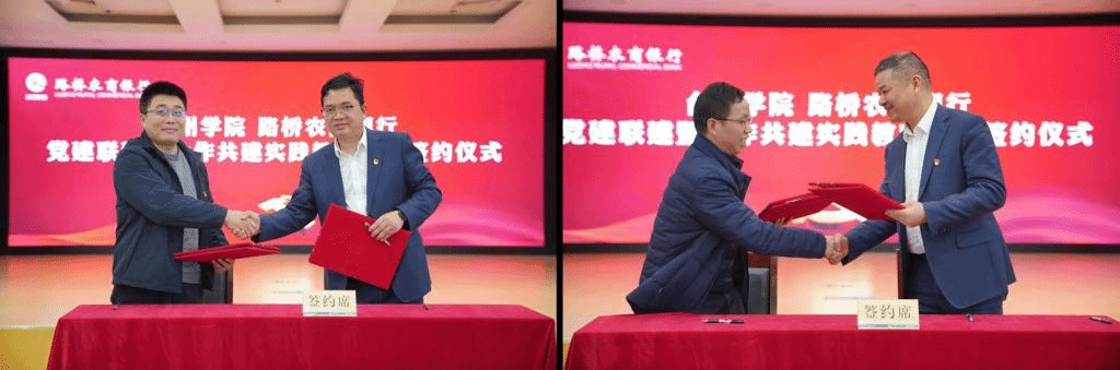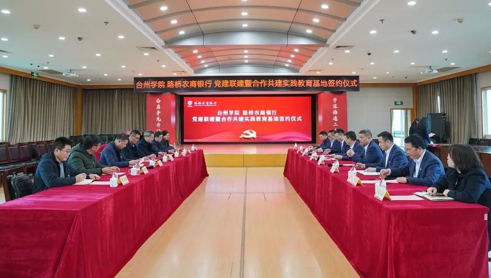2月8日下午,天游线路测速登录中心天游ty8线路1线路2检测中心入口与路桥农商银行举行党建联建暨合作共建实践教育基地签约仪式。天游线路测速登录中心天游ty8线路1线路2检测中心入口院长、小微金融学院院长段文奇,天游ty8线路1线路2检测中心入口党委书记周全宝、副院长陈国栋、金融学系主任蒋俊贤、教师第一党支部书记董智勇等一行到路桥农商银行出席签约仪式。路桥区人力资源和社会保障局党组成员、副局长梁超,路桥区就业事务中心主任陈芳,路桥农商银行党委书记、董事长罗洋明,党委副书记、行长陈学军等路桥农商银行党委班子,路桥农商银行开发区支行负责人以及机关第一党支部书记和代表参加。