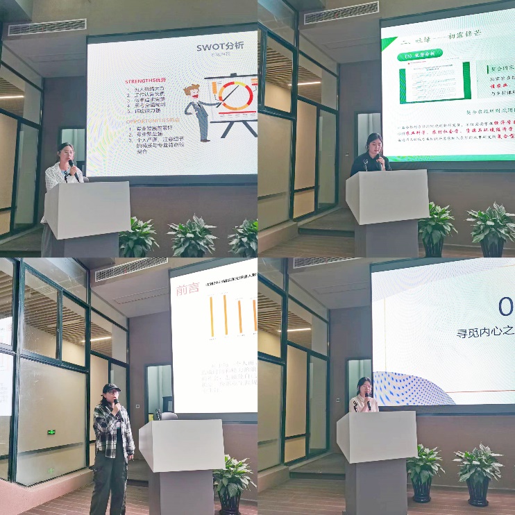 比赛设有成长和就业两个赛道。8名参赛选手根据赛前抽签顺序,通过PPT演示、现场演讲等形式,结合生涯发展报告,围绕职业目标、行动成果、目标契合度、职业准备等方面进行陈述,展示了自己的规划思路和对目标职业的理解,展示了自身在通用素质、就业能力、职业道德等方面所具备的优势。现场评委依据选手个人实际、生涯实践、发展成果等提问,引导他们进一步思考职业规划的实践。