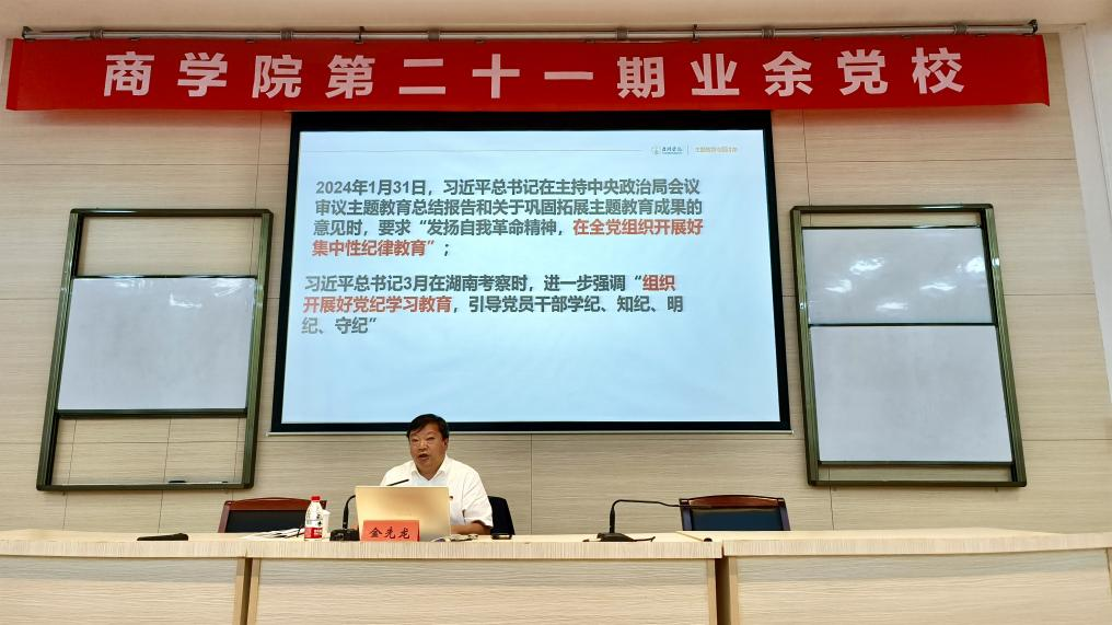 开学典礼后,天游线路测速登录中心原党委副书记金先龙作业余党校第一讲——《中国共产党纪律处分条例》解读。在报告中,金先龙深入解读了《中国共产党纪律处分条例》的修订历程和新增、修改的重点条文。他通过丰富的案例和深刻的分析,让学员们深刻理解了党的纪律教育的重要性和必要性。金先龙强调,党的纪律是党的生命,是全体党员必须遵守的行为准则。他勉励全体学员要认真学纪、准确知纪、自觉明纪、严格守纪,认真学习党的章程,为成为一名合格的中国共产党员而奋斗。