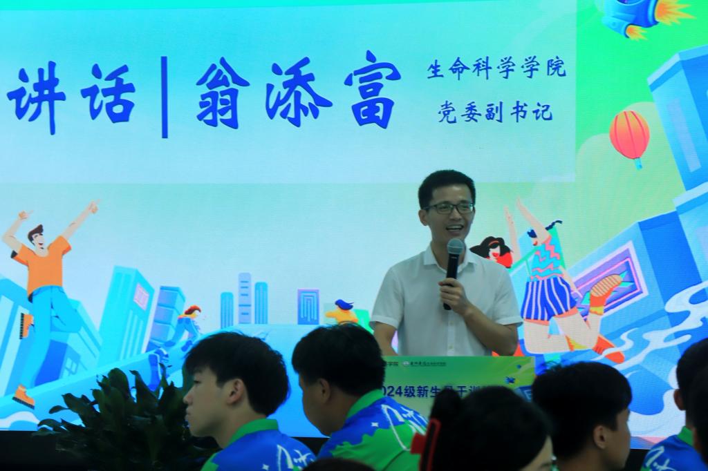 会上,生命科学学院学工办主任陈佳阳宣布了新生骨干训练营活动方案,本次新生骨干训练营为期五天,采用专题教学和现场教学相结合的方式,为同学们提供理想信念教育、台州文化和校史校情教育、人文素养教育等丰富多彩的培训内容。